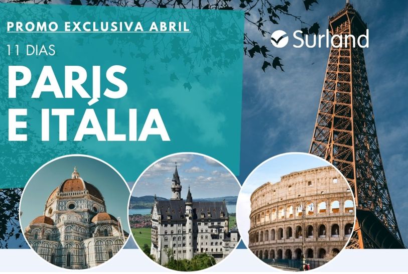 Promoção válida para novas reservas, para compras até 30 de abril (enquanto houver disponibilidade). Itinerário: Paris, Boppard, Cruzeiro do Reno, St. Goar, Frankfurt, Rothenburg, Fussen, Innsbruck, Pádua, Veneza, Pisa, Florença, Roma